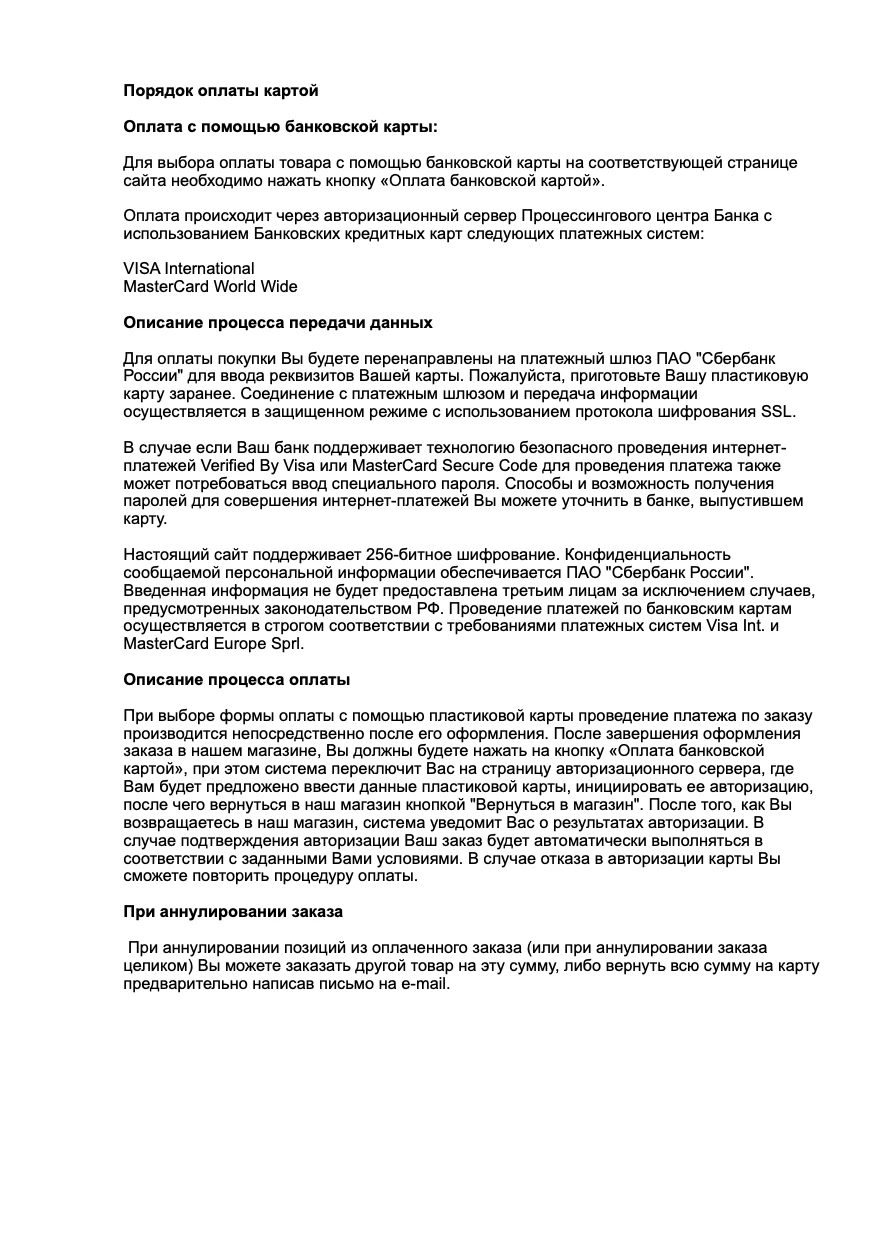 Порядок оплаты картой